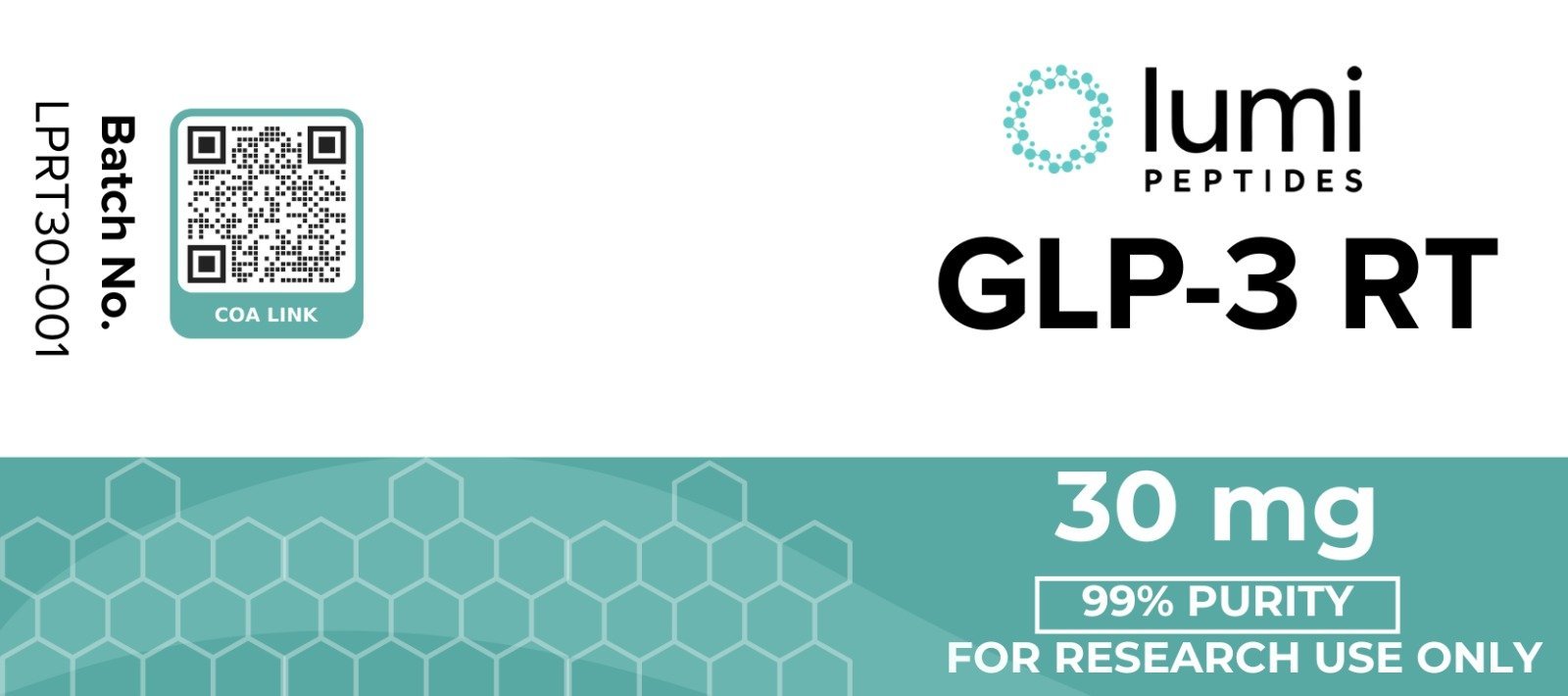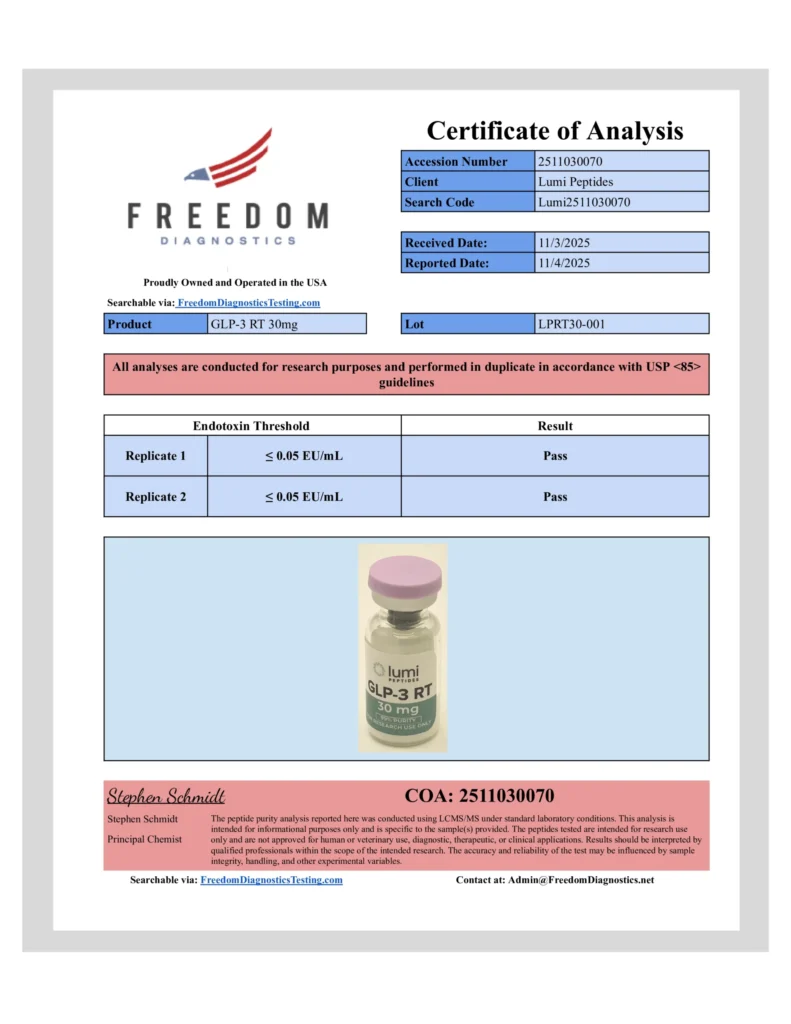 GLP-3 RT-30 is sold for research and educational purposes only. It has not been evaluated by the FDA and is not intended to diagnose, treat, cure, or prevent any disease.